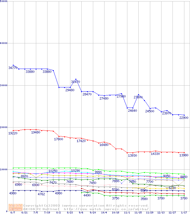 Socket A・FSB 266MHzの最安値推移
