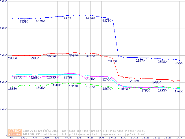 Socket 478・FSB 400MHzの最安値推移