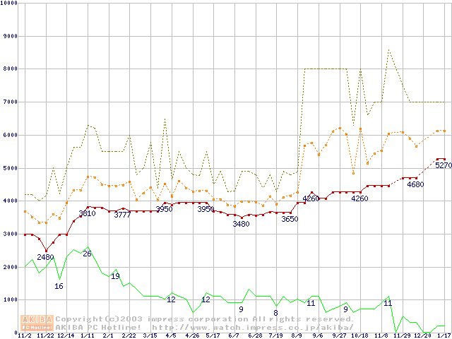 PC133 SDRAM DIMM CasLatency=2の最安値推移