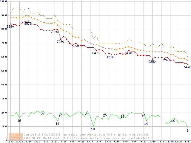 Fireball 3 (5400rpm,UltraATA/133,2MB,FDB)の最安値推移