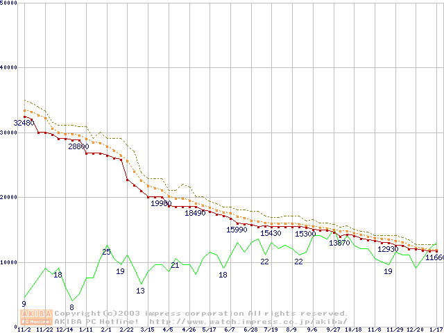 DiamondMax Plus 9 (7200rpm,8MB,UltraATA/133,FDB)の最安値推移