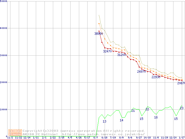 HDD主要製品の最安値推移