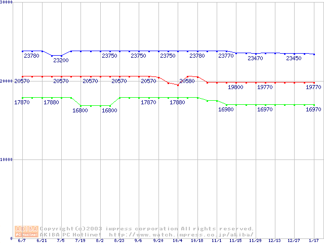 | [↓次グラフ]: | Socket 370 (FC-PGA,FSB 133MHz,L2 256KB,Coppermine)の最安値推移 |