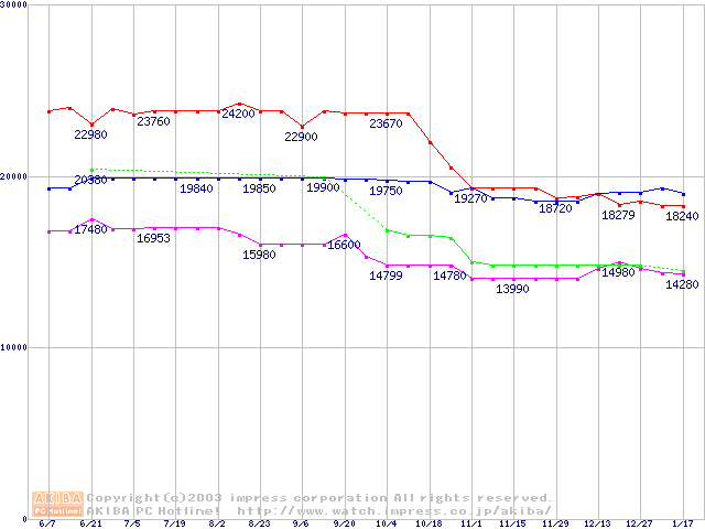 | [↓次グラフ]: | Socket 604 (micro-PGA,FSB 533MHz,L2 512KB,Prestonia)の最安値推移 |