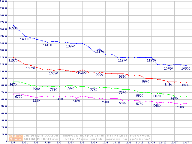 | [↓次グラフ]: | Barracuda 5400.1 (5400rpm,UltraATA/100,2MB,FDB)の最安値推移 |