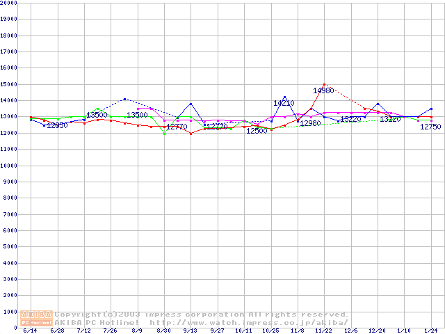 | [↑前グラフ]: | 2.5インチHDD 20GB~40GB未満(9.5mm厚)の最安値推移 |