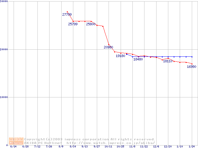 | [↓次グラフ]: | 2.5インチHDD 80GB以上(9.5mm厚)の最安値推移 |
