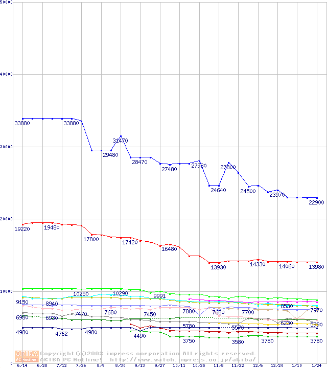 Socket A・FSB 266MHzの最安値推移