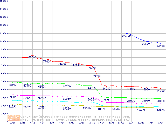 Socket A・FSB 266MHzの最安値推移