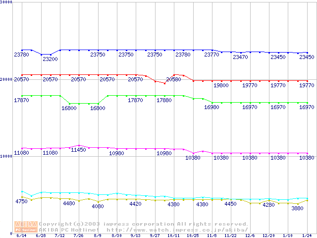 | [↓次グラフ]: | Socket 370・FSB 100MHzの最安値推移 |