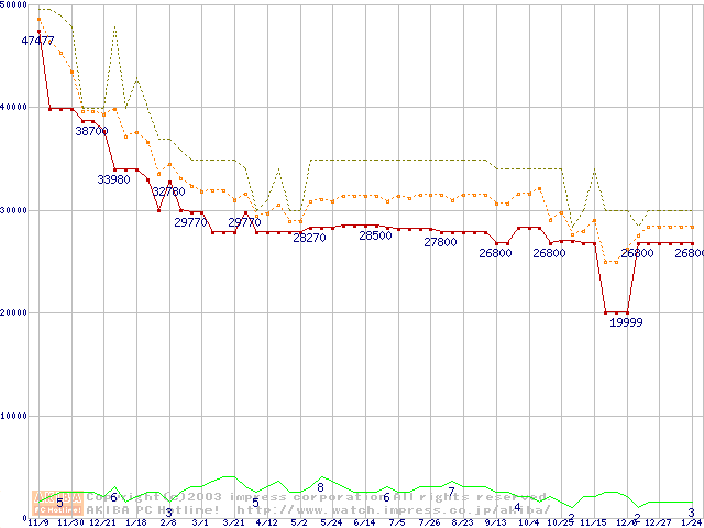 PC1066 DRDRAM RIMM4200(32bit)の最安値推移