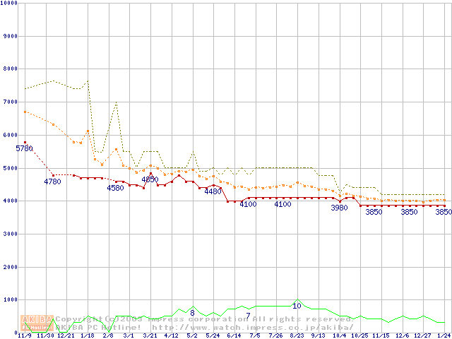 Socket 370・FSB 100MHzの最安値推移