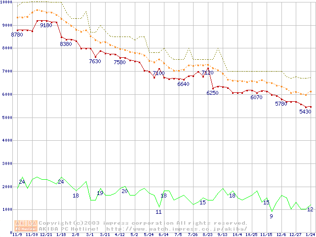 DiamondMax Plus 8 (7200rpm,2MB,UltraATA/133,FDB)の最安値推移