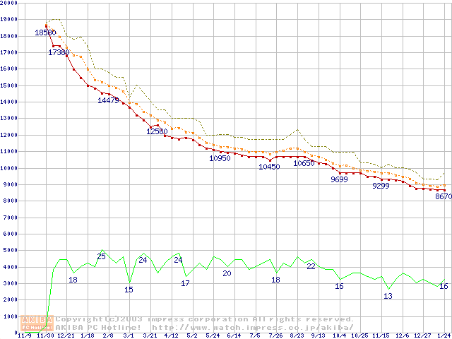 HDD主要製品の最安値推移