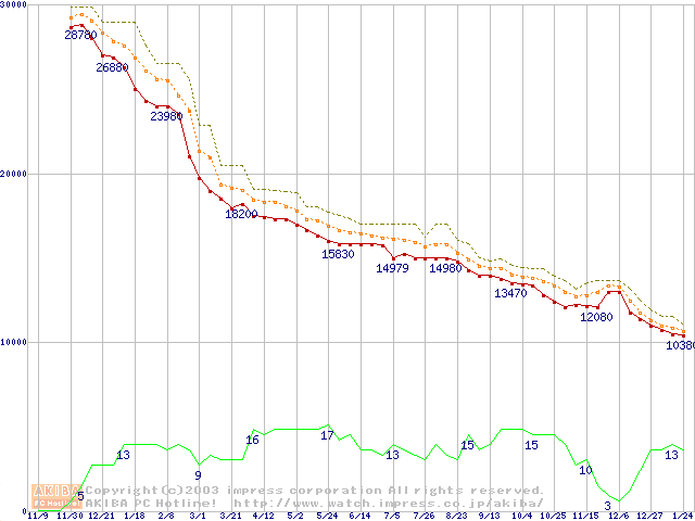 DiamondMax Plus 9 (7200rpm,2MB,UltraATA/133,FDB)の最安値推移