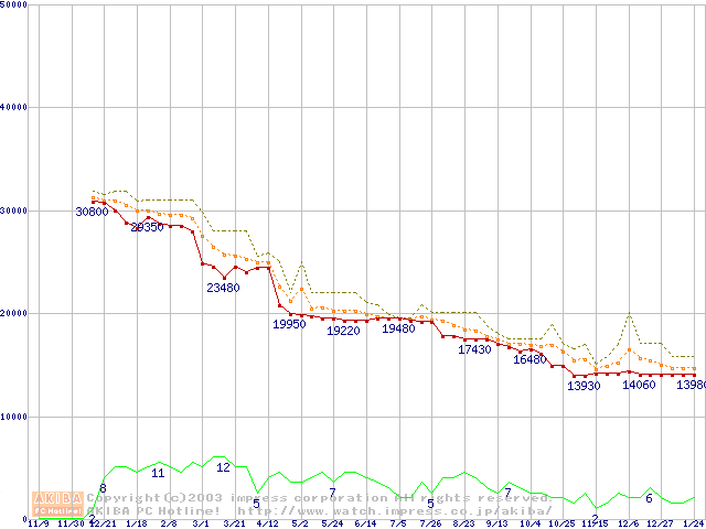 Socket A (OPGA,FSB 266MHz,L2 256KB,Thoroughbred)の最安値推移