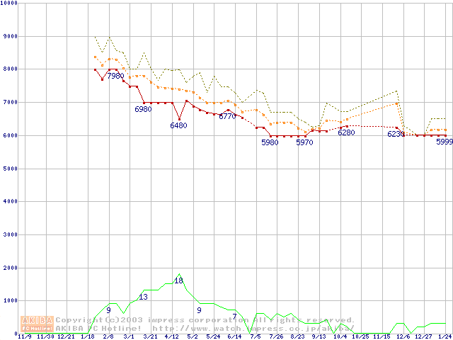 Socket A (OPGA,FSB 266MHz,L2 256KB,Thoroughbred)の最安値推移