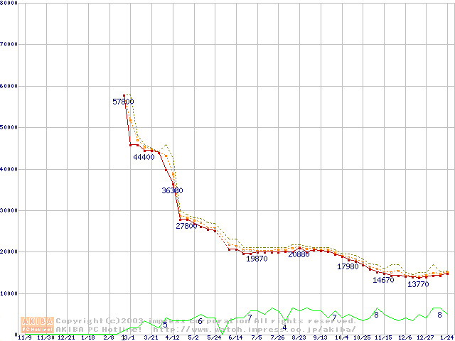 Socket A (OPGA,FSB 333MHz,L2 512KB,Barton)の最安値推移