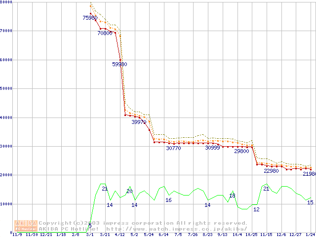 Athlon XP 3000+ (2.17GHz) リテールパッケージの価格推移