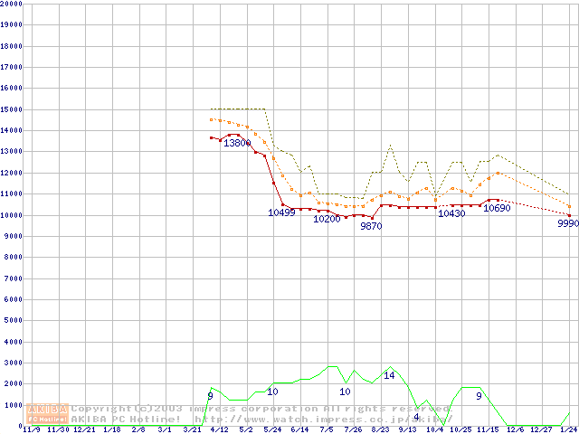 Travelstar 80GN IC25N020ATMR04 (20GB)の価格推移