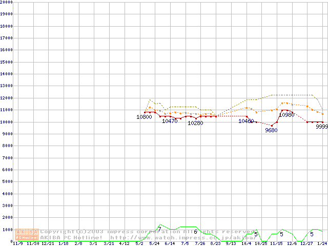 MKシリーズ (9.5mm,4200rpm,2MB,FDB,30GB/Platter)の最安値推移