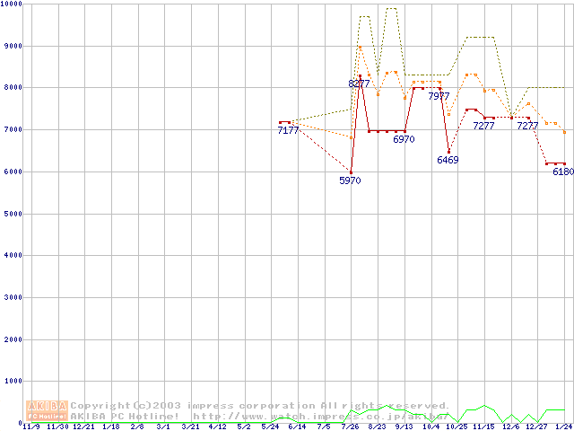 PC2700(DDR333) DDR SDRAM DIMM ECC対応の最安値推移