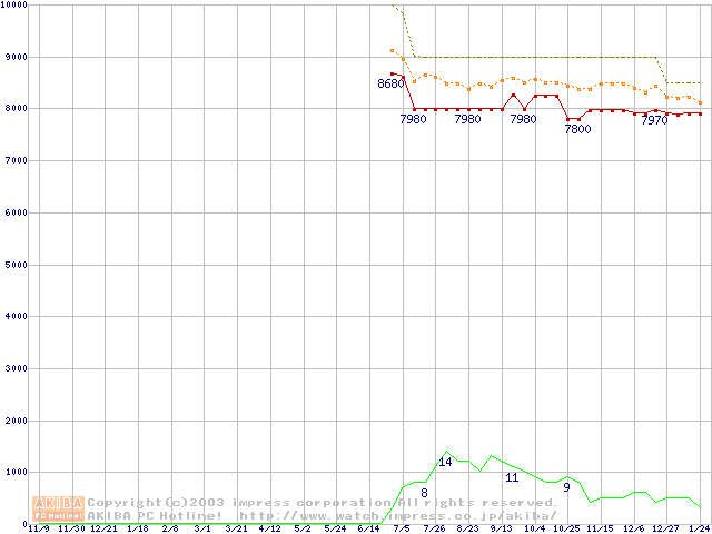 WD Caviar (7200rpm,UltraATA/133,2MB)の最安値推移