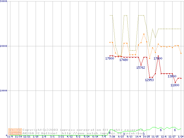 PC3700(DDR466) DDR SDRAM DIMMの最安値推移