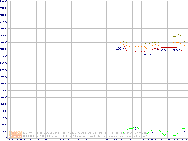 MKシリーズ (9.5mm,4200rpm,8MB,FDB,40GB/Platter)の最安値推移