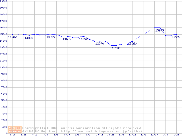 | [↓次グラフ]: | Travelstar DK23EB (9.5mm,5400rpm,UltraATA/100,512KB)の最安値推移 |