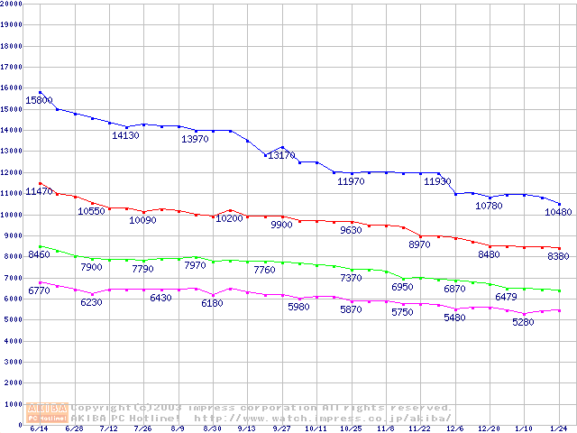 | [↓次グラフ]: | Barracuda 5400.1 (5400rpm,UltraATA/100,2MB,FDB)の最安値推移 |