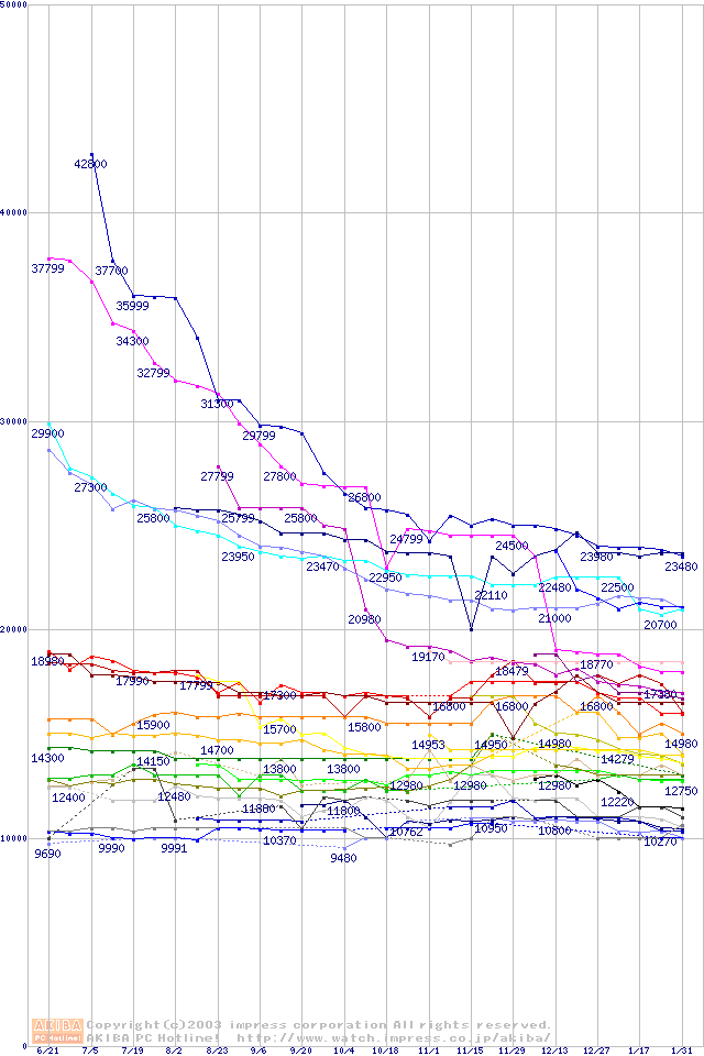 2.5インチHDD主要製品の最安値推移
