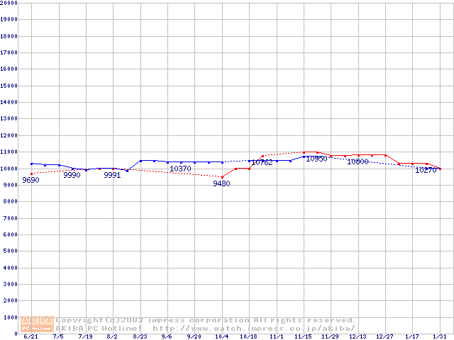 | [↑前グラフ]: | 2.5インチHDD主要製品の最安値推移 |