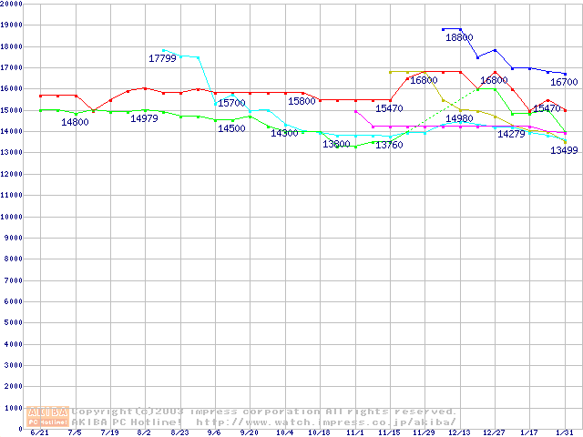 | [↓次グラフ]: | 2.5インチHDD 50GB~60GB以下(9.5mm厚,7200rpm)の最安値推移 |