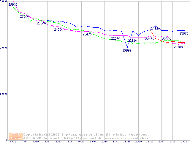| [↓次グラフ]: | 2.5インチHDD主要製品の最安値推移 |
