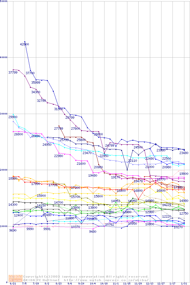 2.5インチHDD 80GB以上(9.5mm厚)の最安値推移