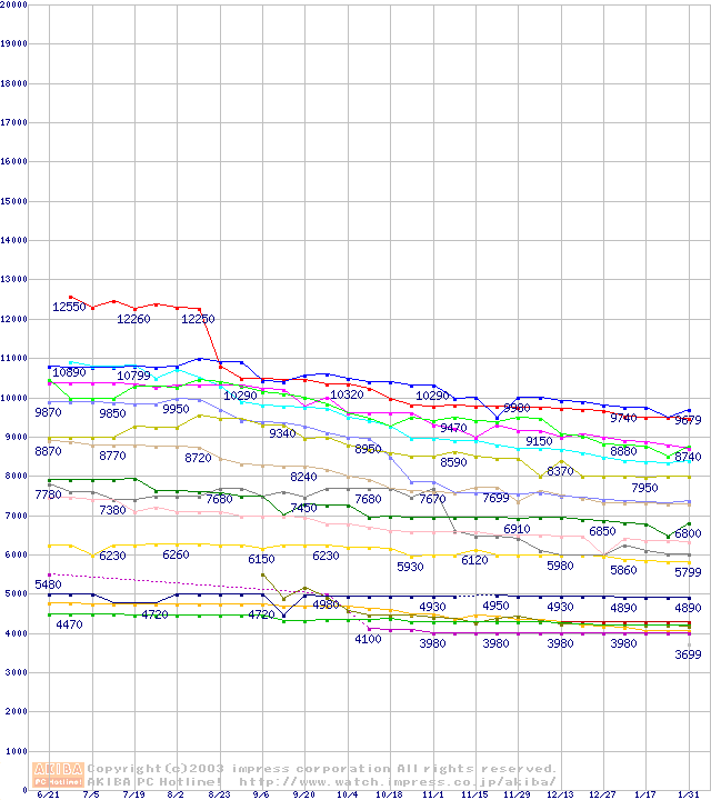 CPU主要製品の最安値推移