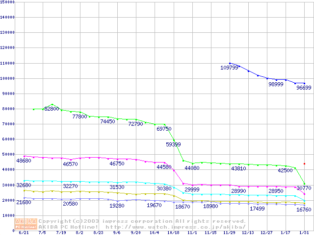 Socket A・FSB 266MHzの最安値推移