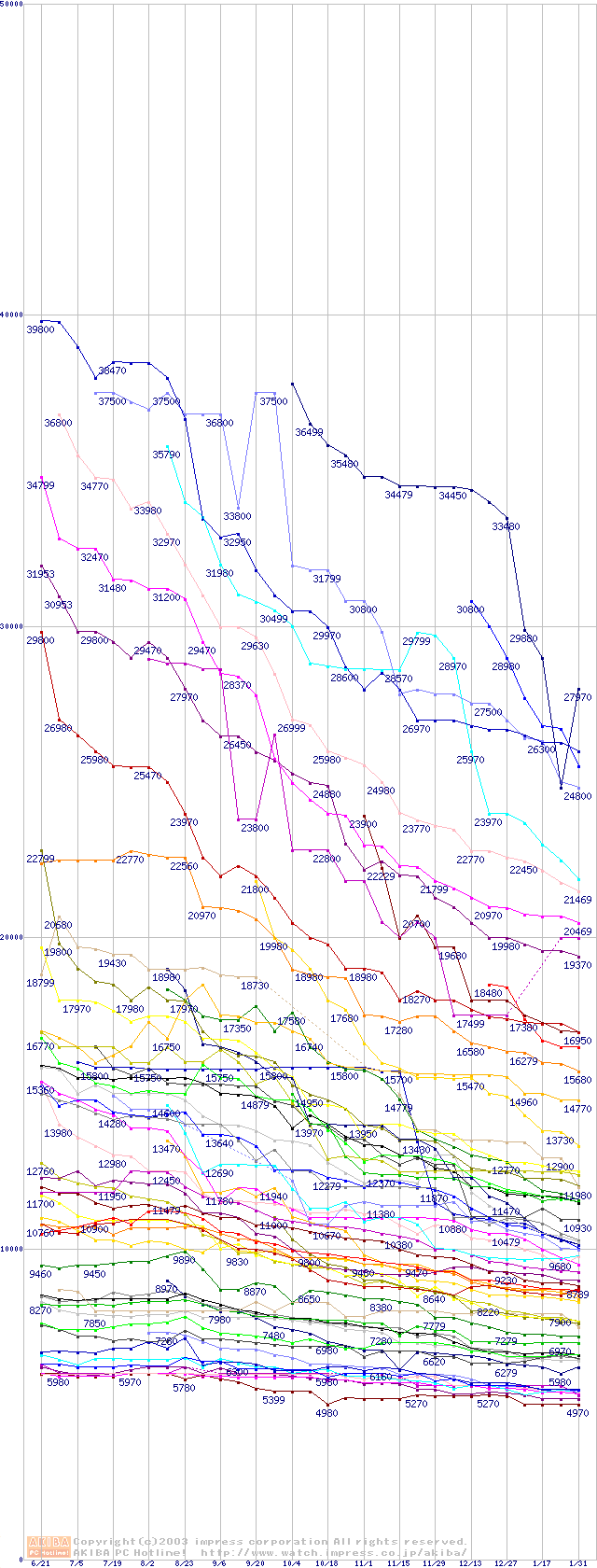 ※製品名をクリックすると個別のグラフを表示します ※点線部は販売店が確認できなかった、または調査データがないことを示します |