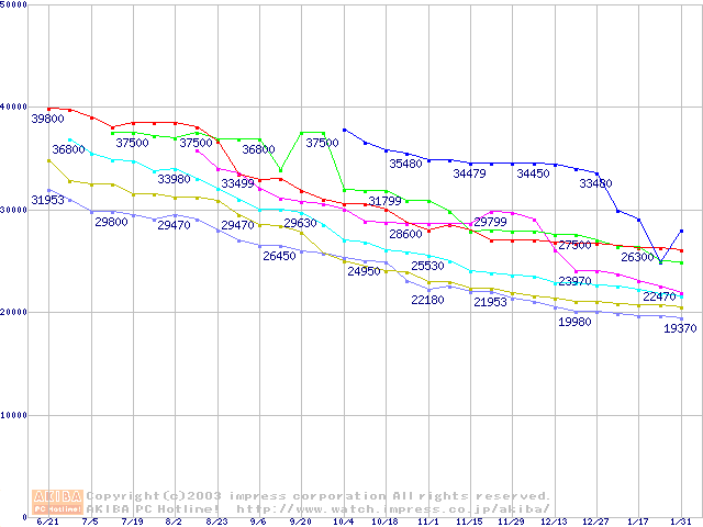 メモリ主要製品の最安値推移