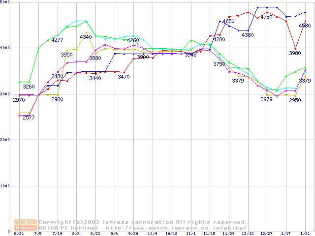 256MBモジュールの最安値推移