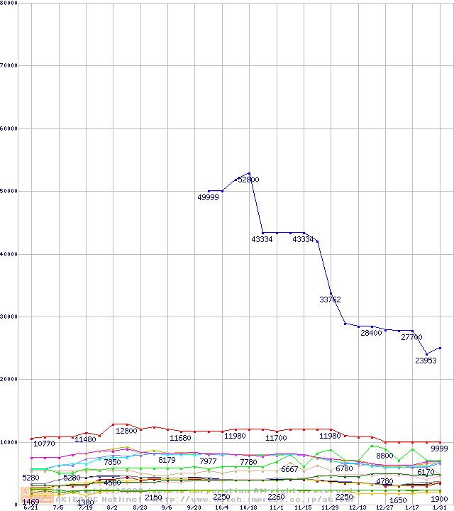 メモリ主要製品(最安値1万円以上)の最安値推移