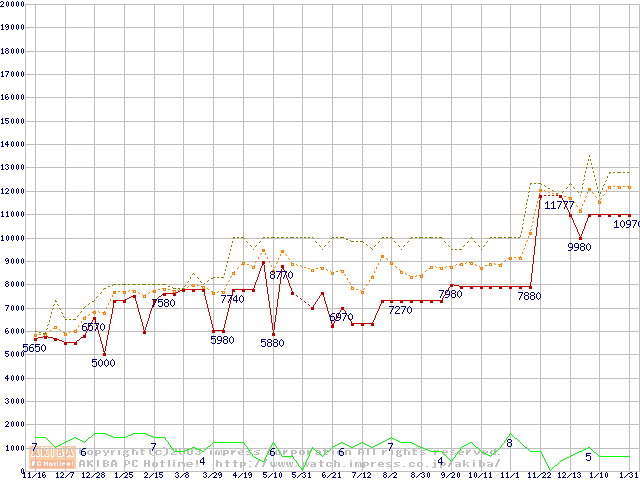 PC100 SDRAM DIMM CasLatency=2の最安値推移