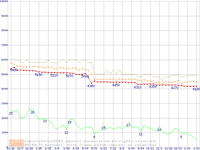 Celeron 1.20GHz FC-PGA2 リテールパッケージの価格推移