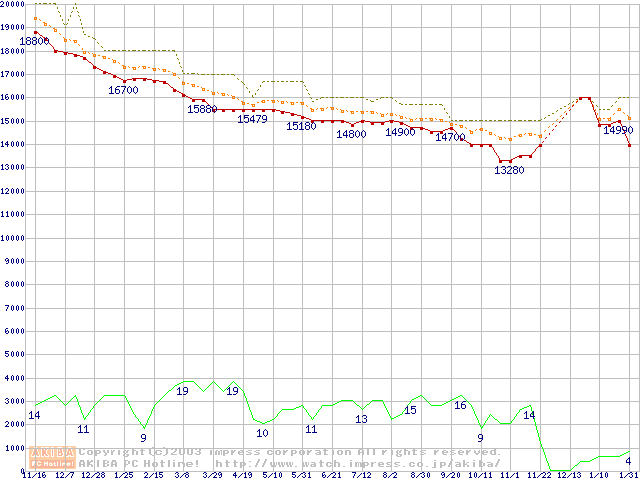 Travelstar 40GNX (9.5mm,5400rpm,UltraATA/100,8MB,FDB,20GB/Platter)の最安値推移