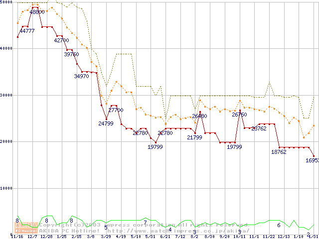 PC2100(DDR266) DDR SDRAM DIMM(CL 2.5)の最安値推移