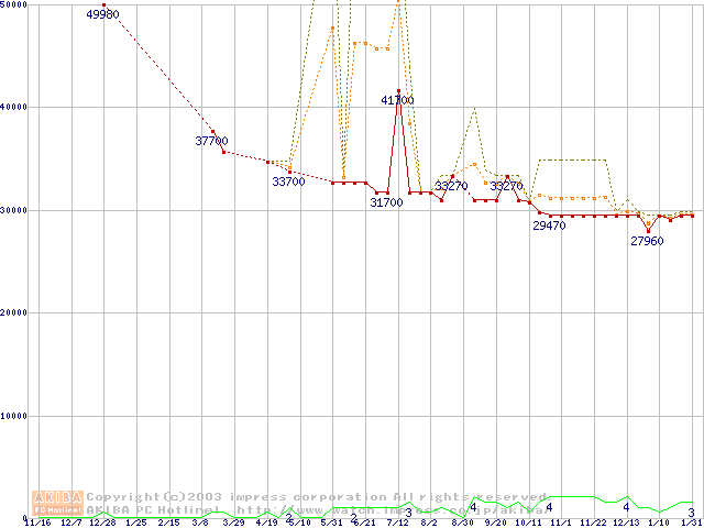 PC2700(DDR333) DDR SDRAM DIMM ECC対応 Registeredタイプの最安値推移