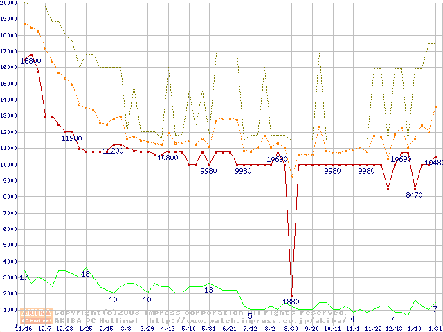 PC1066 DRDRAM RIMMの最安値推移