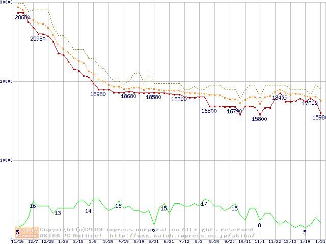 MKシリーズ (9.5mm,4200rpm,2MB,FDB,30GB/Platter)の最安値推移