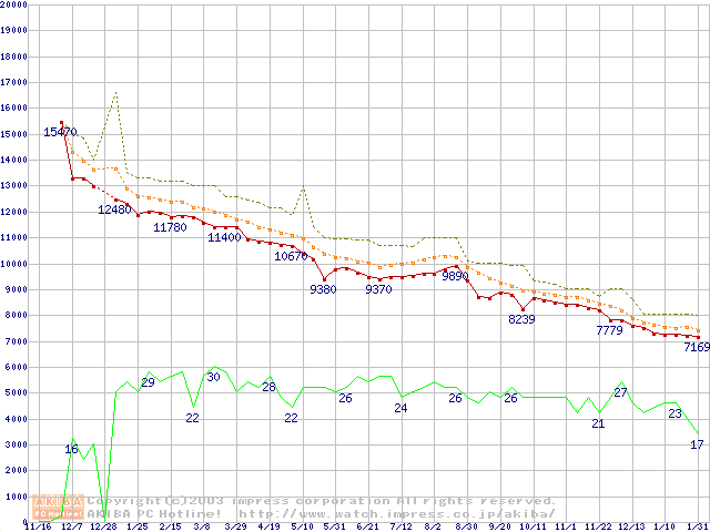 DiamondMax Plus 9 (7200rpm,8MB,UltraATA/133,FDB)の最安値推移